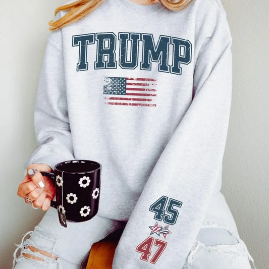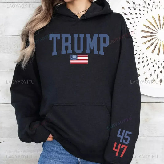 Trump Supporter Unisex Sweatshirt Trump 45 47 President Women Sweatshirt Trump 2024 Hoodie American Flag Patriotic Pullover